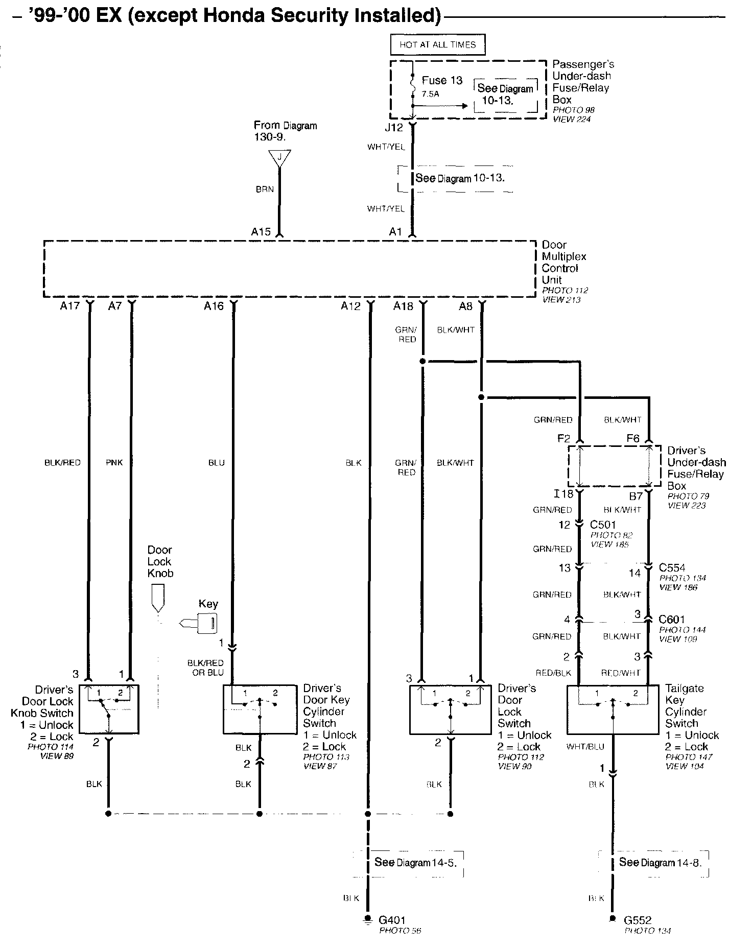 Diagram 130-13 (99-00 EX (Except Honda Security Installed):