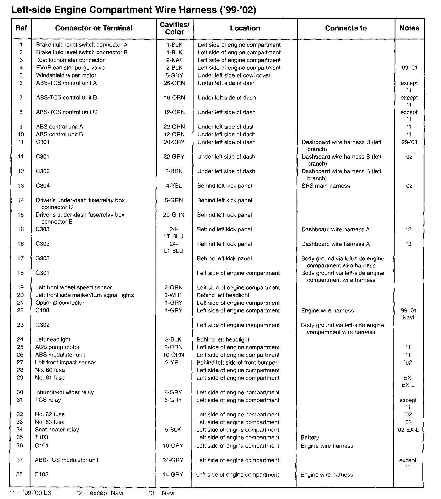 Left-side Engine Compartment Wire Harness (99-02):