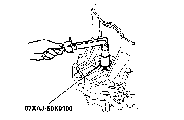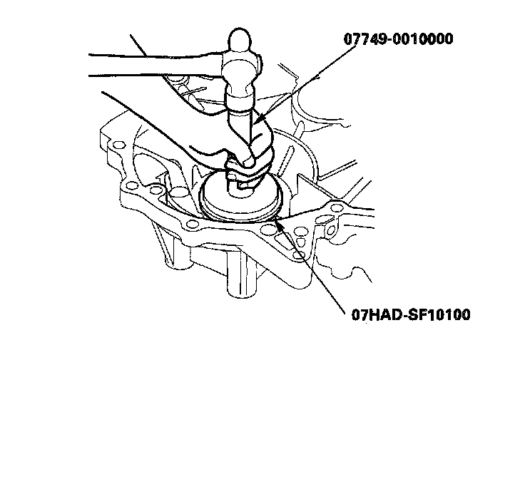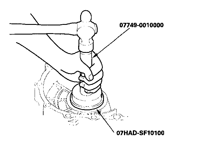 6. Drive the outer race with the special tools, and install it securely in the transmission housing.
