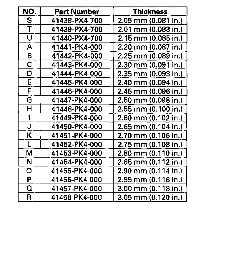 12. To increase the starting torque, increase the thickness of the shim. To decrease the starting torque, decrease the thickness of the shim. Changing the shim to the next size will increase or decrease starting torque about 0.3 - 0.4 Nm (3 - 4 kgf-cm, 3 - 3 inch lbs.).