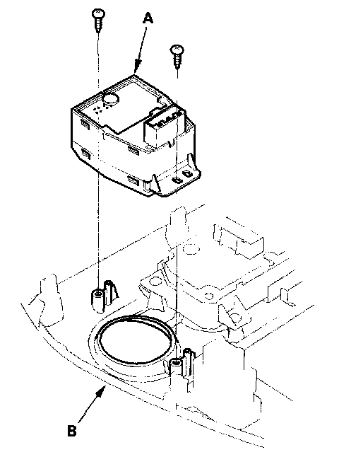 2. Remove the self-tapping screws and the rear heater-A/C main switch (A) from the center panel (B).