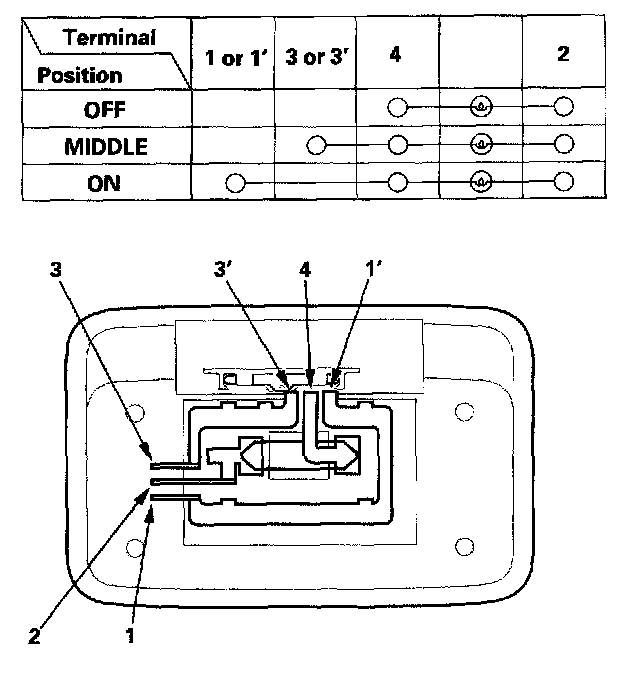 5. Check for continuity between the terminals in each switch position according to the table.