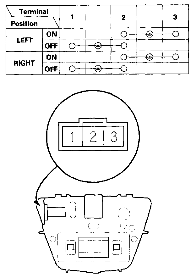 4. Check for continuity between the terminals in each switch position according to the table.