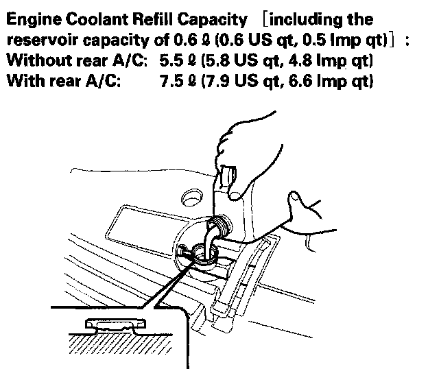 8. Pour Honda All Season Antifreeze/Coolant Type 2 into the radiator up to the base of the filter neck.