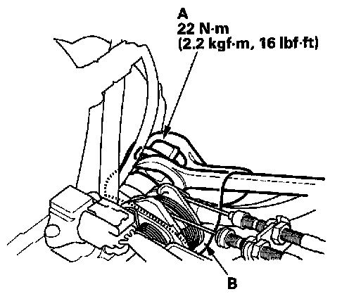 15. Reconnect the vacuum hose, remove the pressure gauge, and reinstall the fuel pulsation damper and a new washer. Tighten the fuel pulsation damper to 22 Nm (2.2 kg.m, 16 lb.ft).