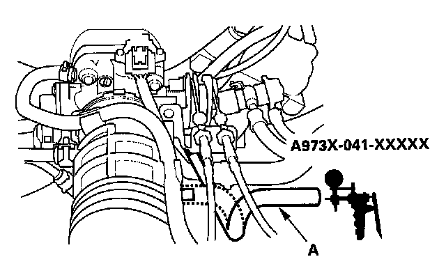 2. Remove the vacuum hose (A) from the install pipe, and connect a vacuum gauge to the hose.
