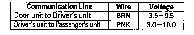 - Check for voltage in the BRN and PNK lines between control units. These should be about 12 volts in the sleep mode.