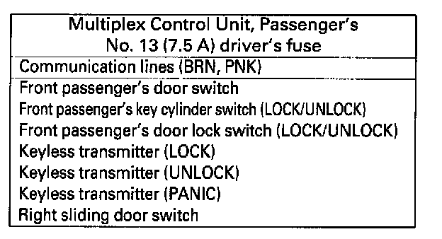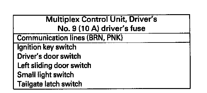 1. Check the No.9 driver's and 13 passenger's fuses.