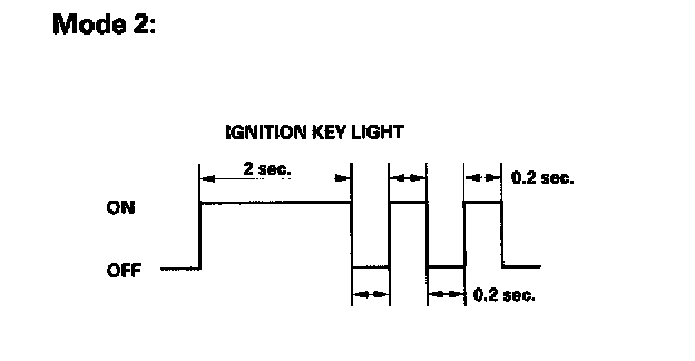 14. Look in the following tables for the switch most closely related to the problem. While still in Mode 2, operate that switch to test the circuit between the switch and its control unit. If the circuit is OK, the ignition key light should blink once and the beeper should beep once. If the circuit is faulty, there will be no indication.