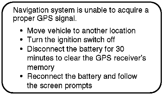 ^ Occasionally, the navigation system may "reboot" due to excess heat or shock, or from recalculating a route too many times. Rebooting does not necessarily indicate a need for service.