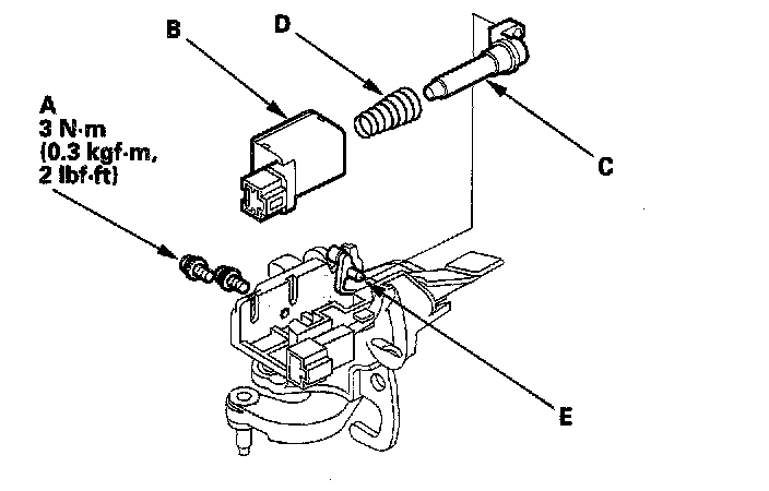 8. Install the shift lock solenoid by aligning the joint of the shift lock solenoid with the tip of the shift lock extension (E), then tighten the screws.