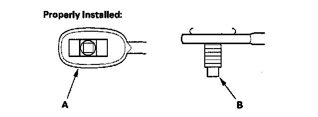 12. Verify that the shift cable end (A) is properly installed on the mounting stud (B).