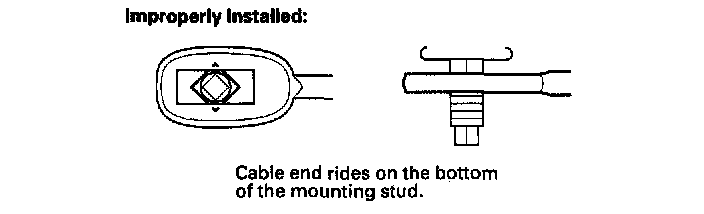 13. If improperly installed, remove the shift cable from the shift cable bracket, and reinstall the shift cable. Do not install the shift cable end on the mounting stud while the shift cable is on the shift cable bracket.