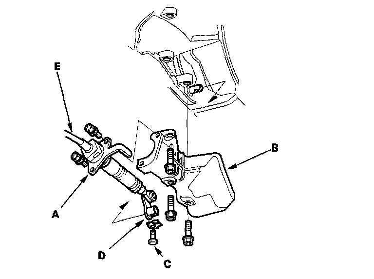 13. Install the lock bolt (D) with a new lock washer (E), then bend the lock washer tab against the bolt head.