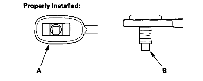 20. Verify that the shift cable end (A) is properly installed on the mounting stud (B).