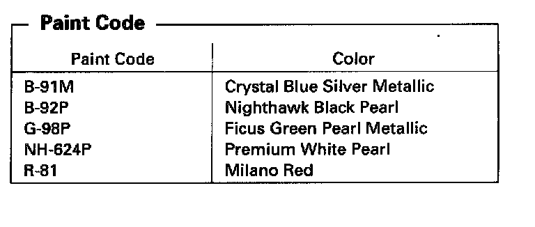 Paint Code -- US Model: