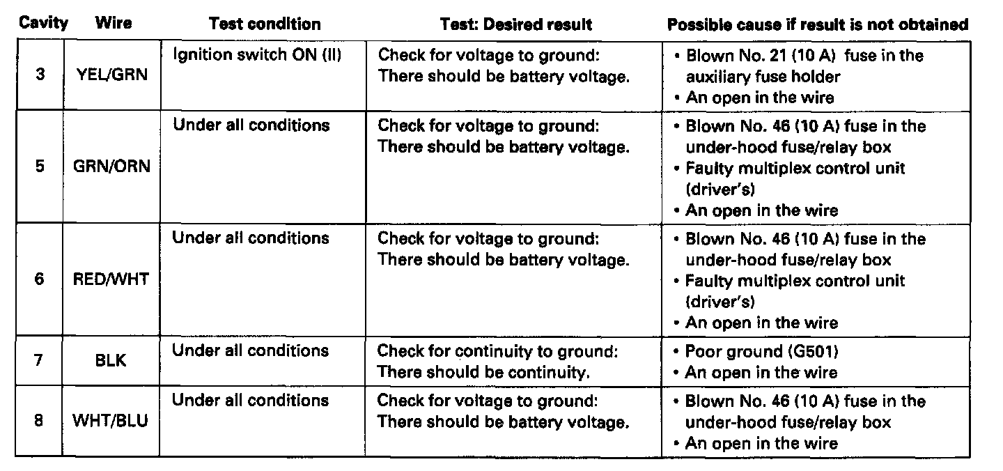 ^ If the terminals look OK, make the following input tests at the connector.