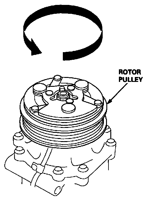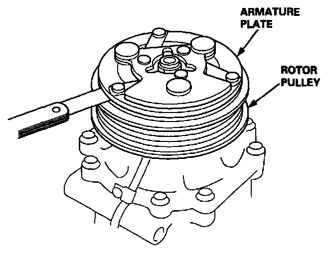 - Measure the clearance between the rotor pulley and the armature plate all the way around. If the clearance is not within specified limits, the armature plate must be removed and shims added or removed as required, following the clutch overhaul.