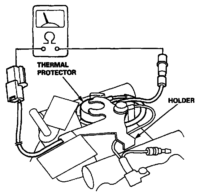 - Release the field coil connector from the holder, then disconnect it. Check the thermal protector for continuity. If there is no continuity, replace the thermal protector.