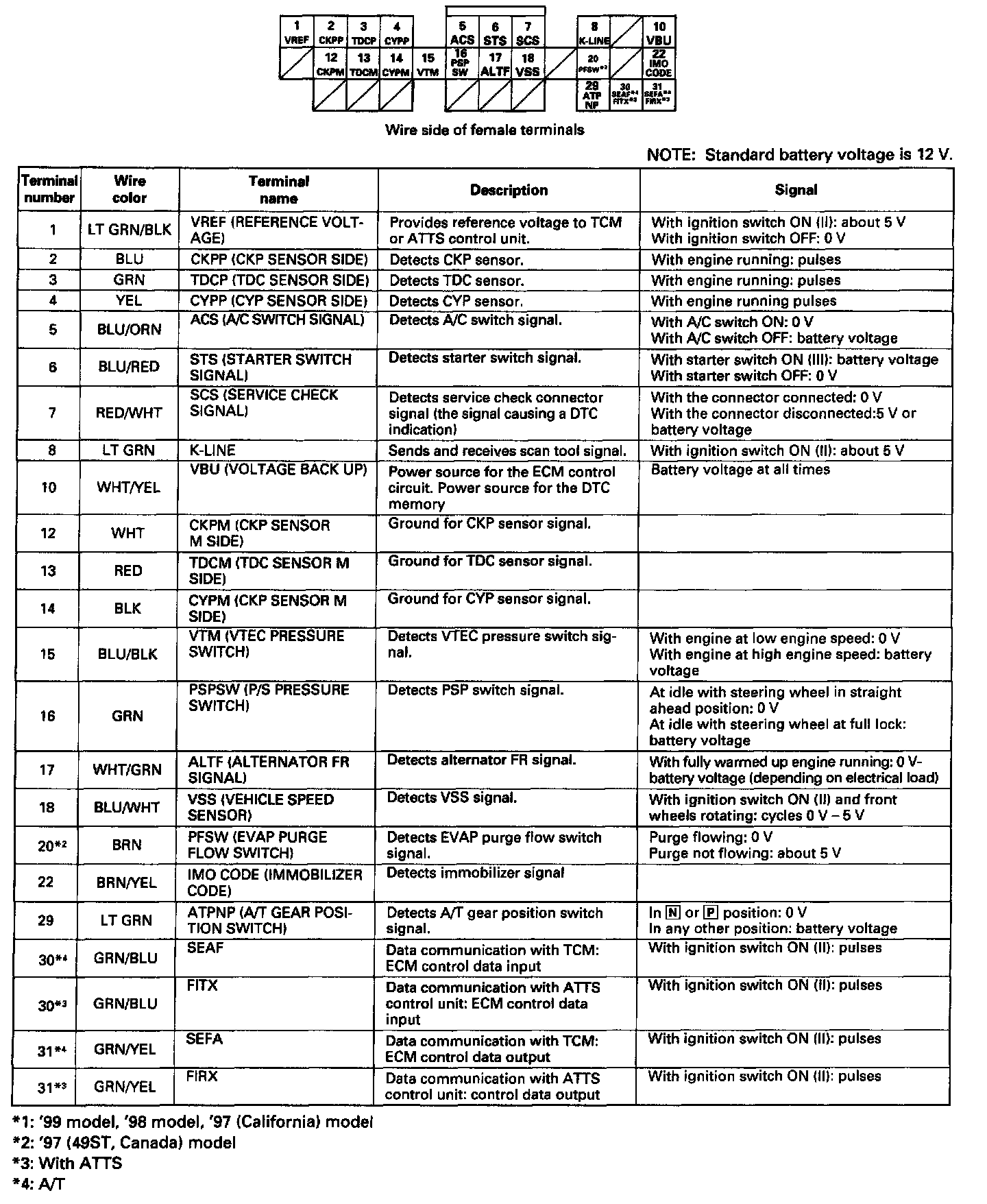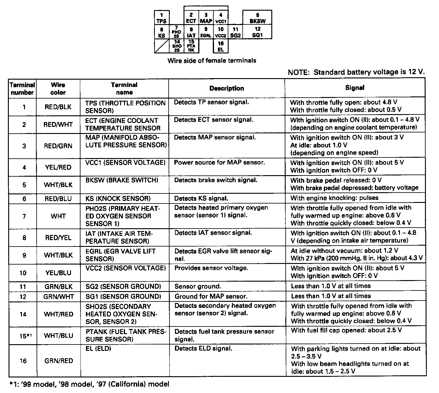 Pinout Values and Diagnostic Parameters