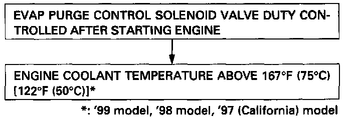 EVAP control canister purging is accomplished by drawing fresh air through the EVAP control canister and into a port on the throttle body. The purging vacuum is controlled by the EVAP purge control solenoid valve.