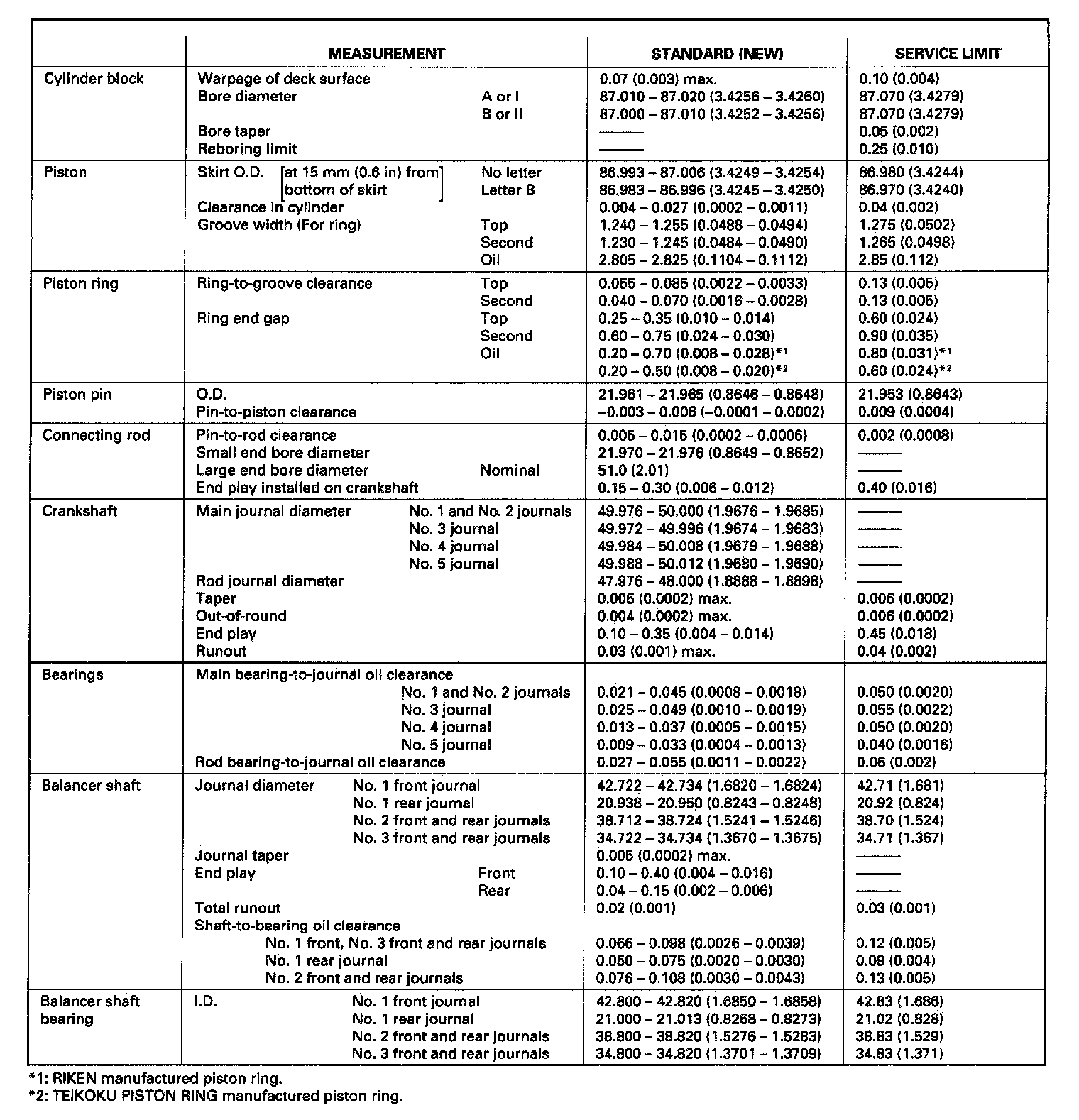 Engine Block Specifications: