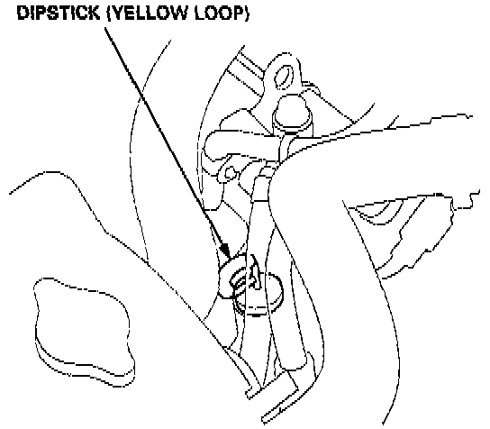 2. Remove the dipstick (yellow loop) from the transmission, and wipe it with a clean cloth.