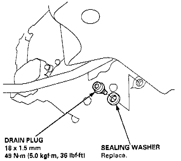 1. Bring the transmission up to normal operating temperature (the radiator fan comes on) by driving the vehicle. Park the vehicle on level ground, turn the engine off, and then remove the drain plug.