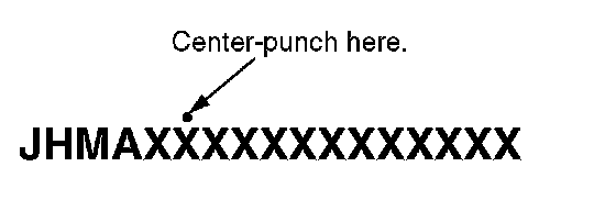 9. Center-punch a completion mark above the sixth character of the engine compartment VIN.