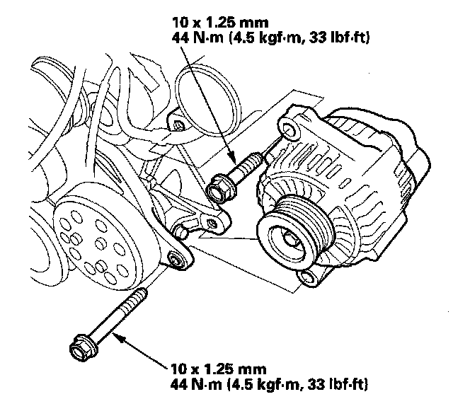 6. Remove the mounting bolts, then remove the alternator.