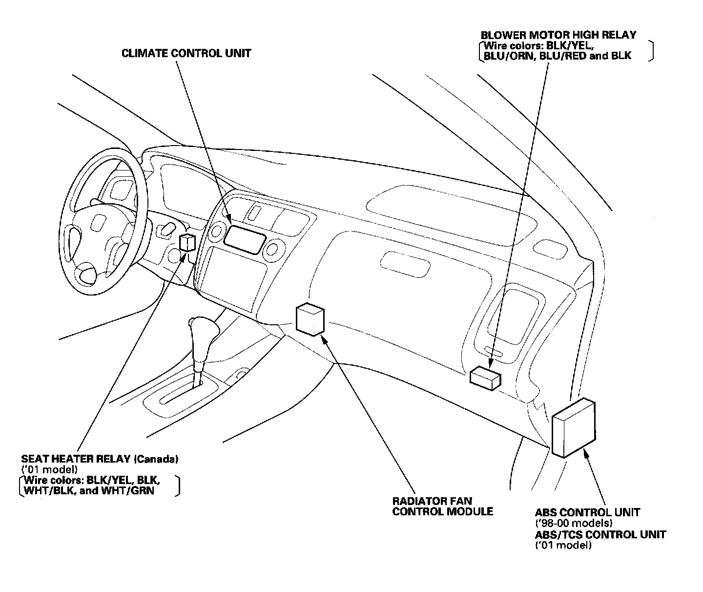 Relay And Control Unit Locations - Dashboard: