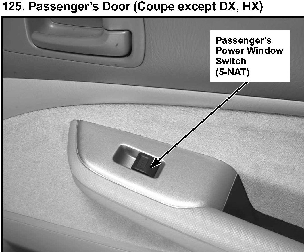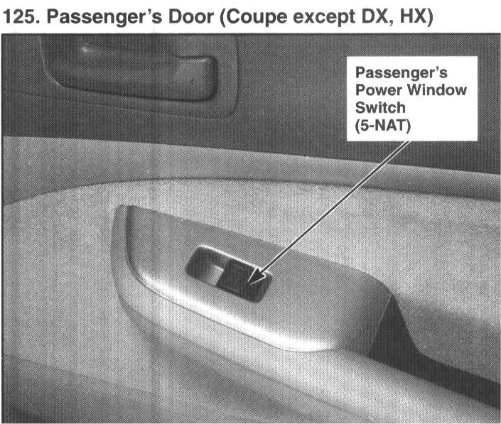125. Passenger's Door (Coupe except DX, HX):