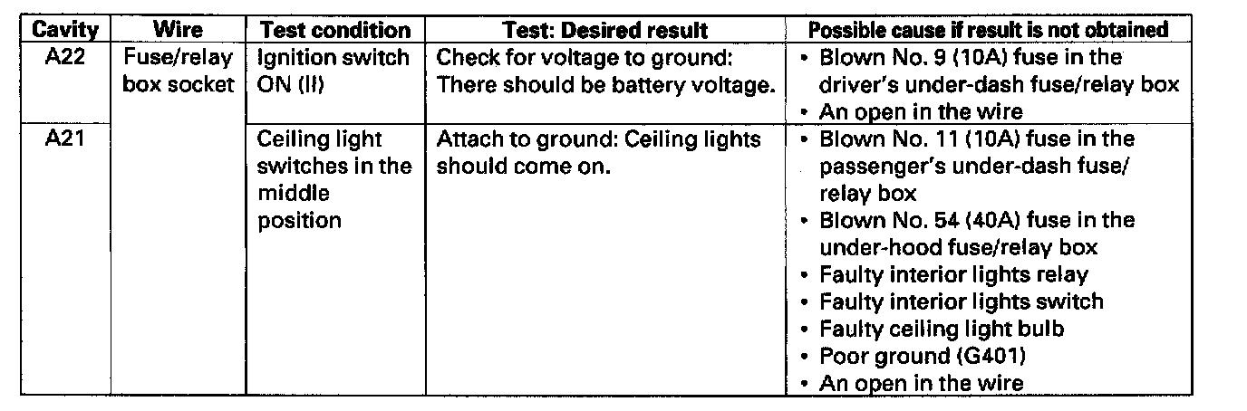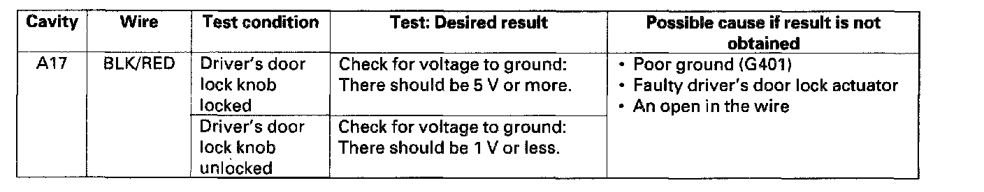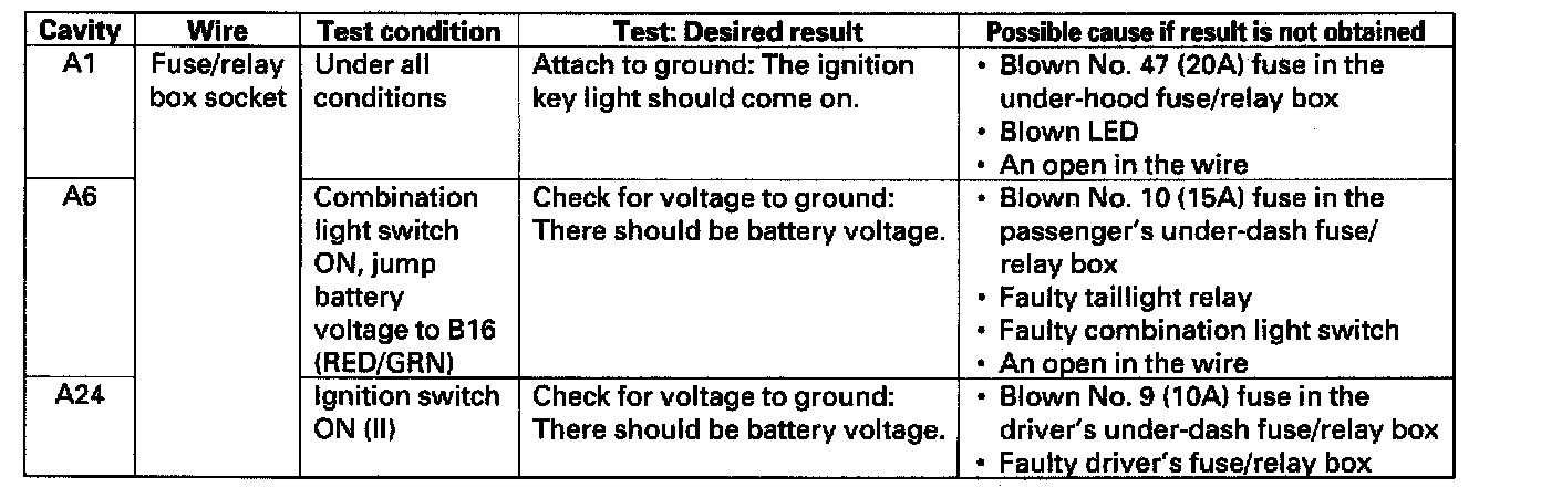 4. With the driver's unit still disconnected, make these input tests at the connector and fuse/relay box socket.