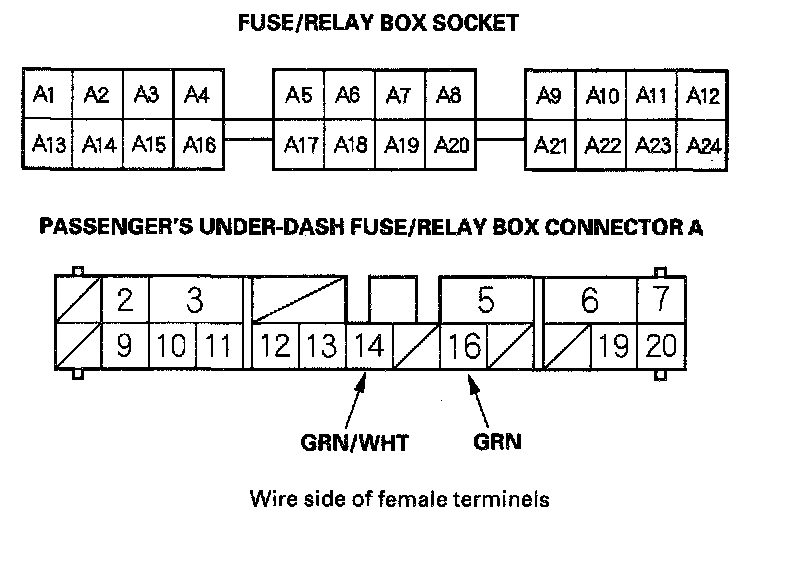 6. Remove the passenger's unit from the passenger's under-dash fuse/relay box, and disconnect its connector.