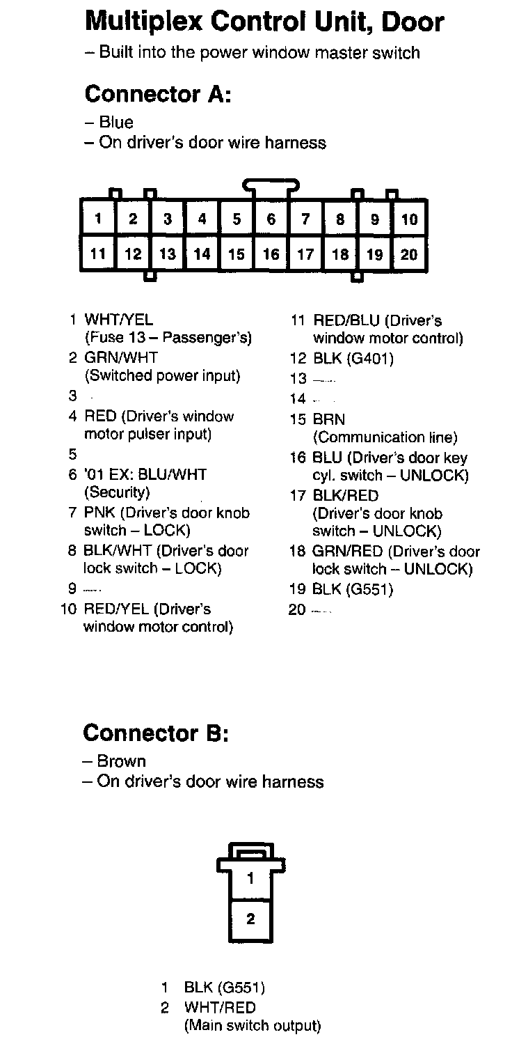 Multiplex Control Unit, Door Connectors A And B: