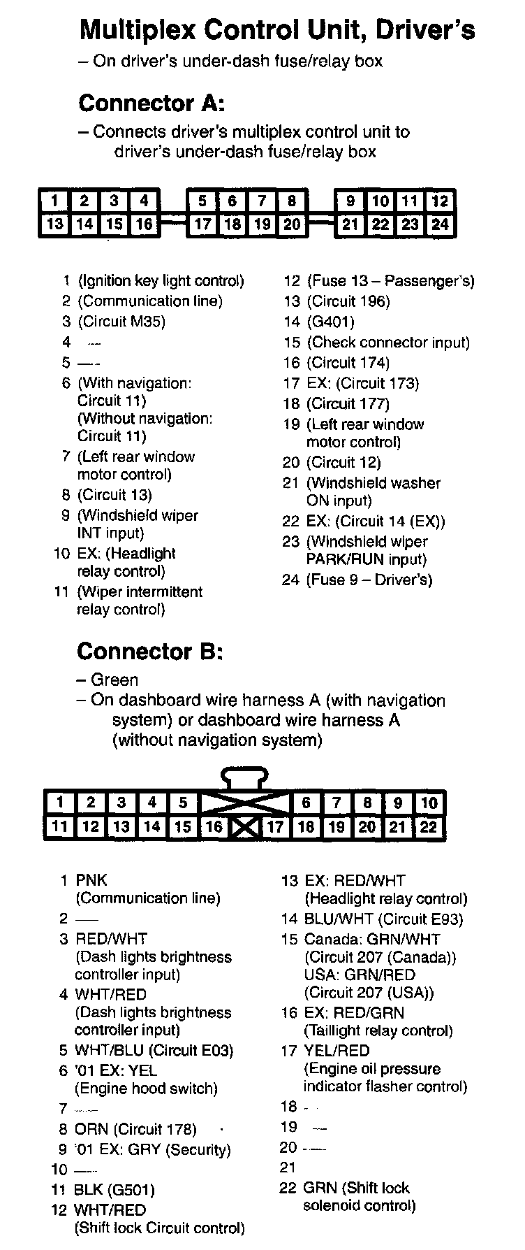 Multiplex Control Unit, Driver's Connectors A And B: