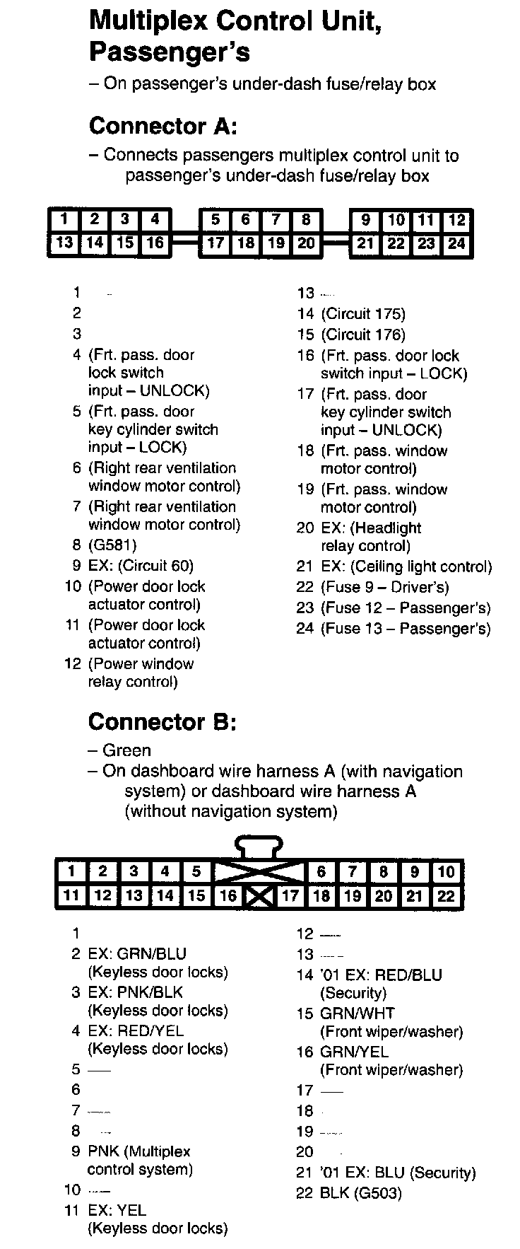 Multiplex Control Unit, Passenger's Connectors A And B: