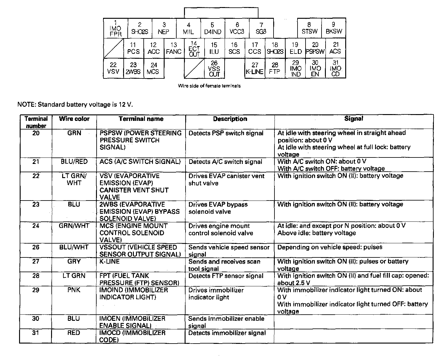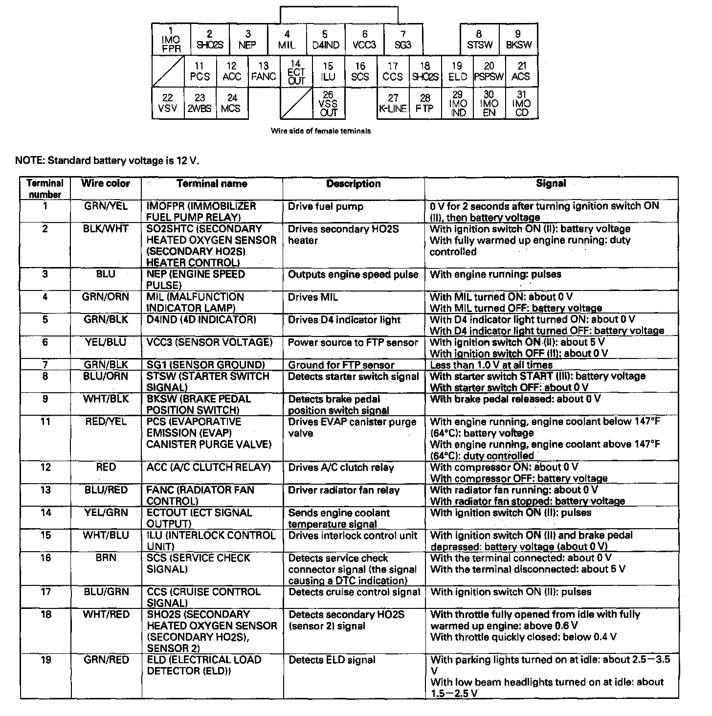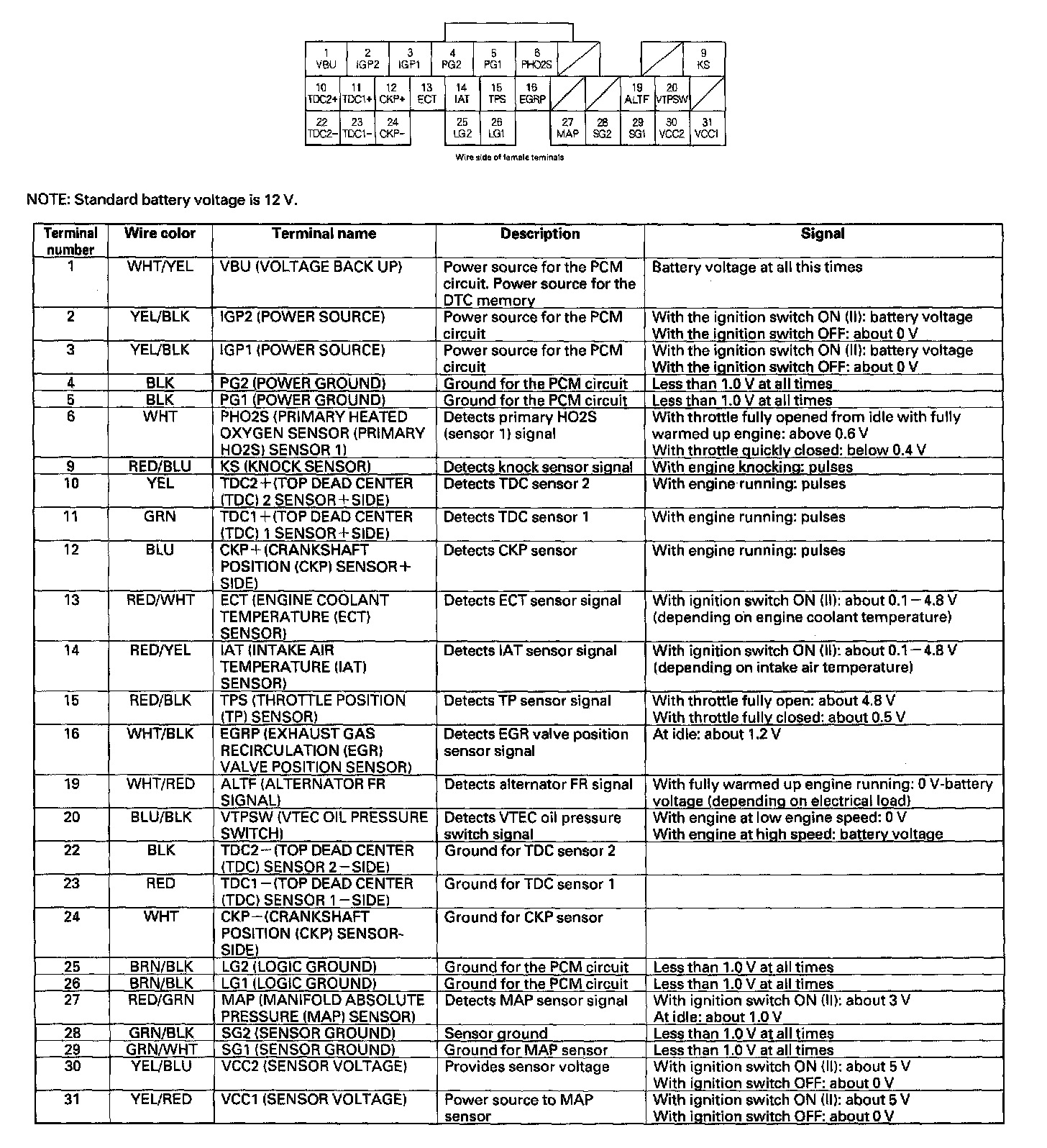 PCM Inputs Outputs At Connector E (31P) Part 1: