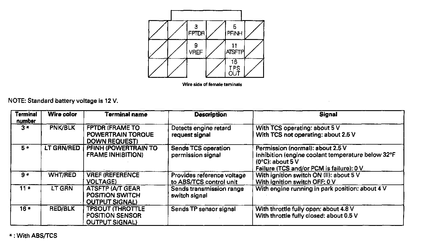 PCM Inputs Outputs At Connector D (17P) (With ABS/TCS):