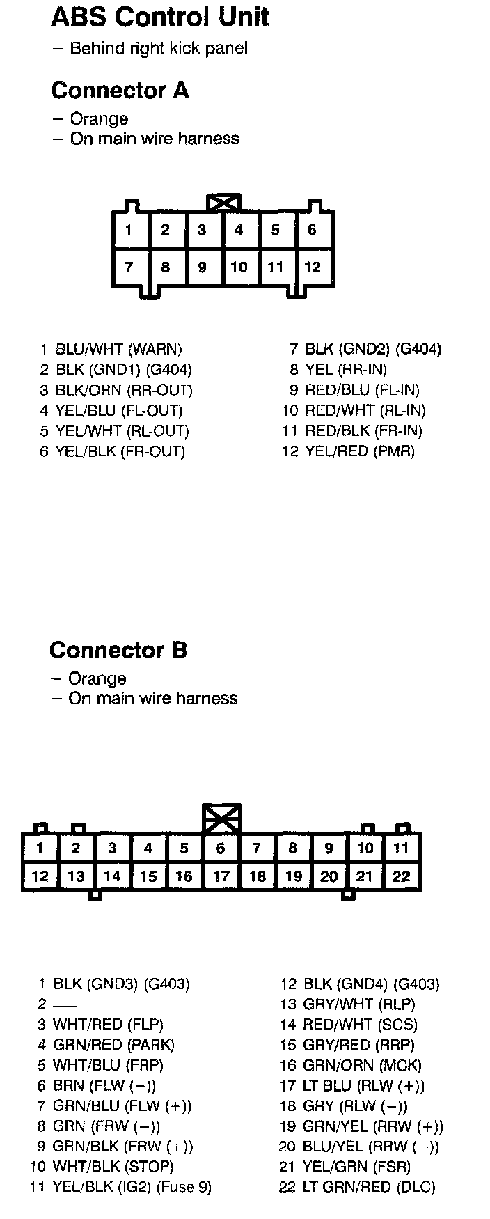 ABS Control Unit Connectors A And B: