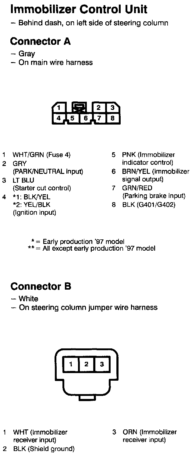 Immobilizer Control Unit Connectors A And B: