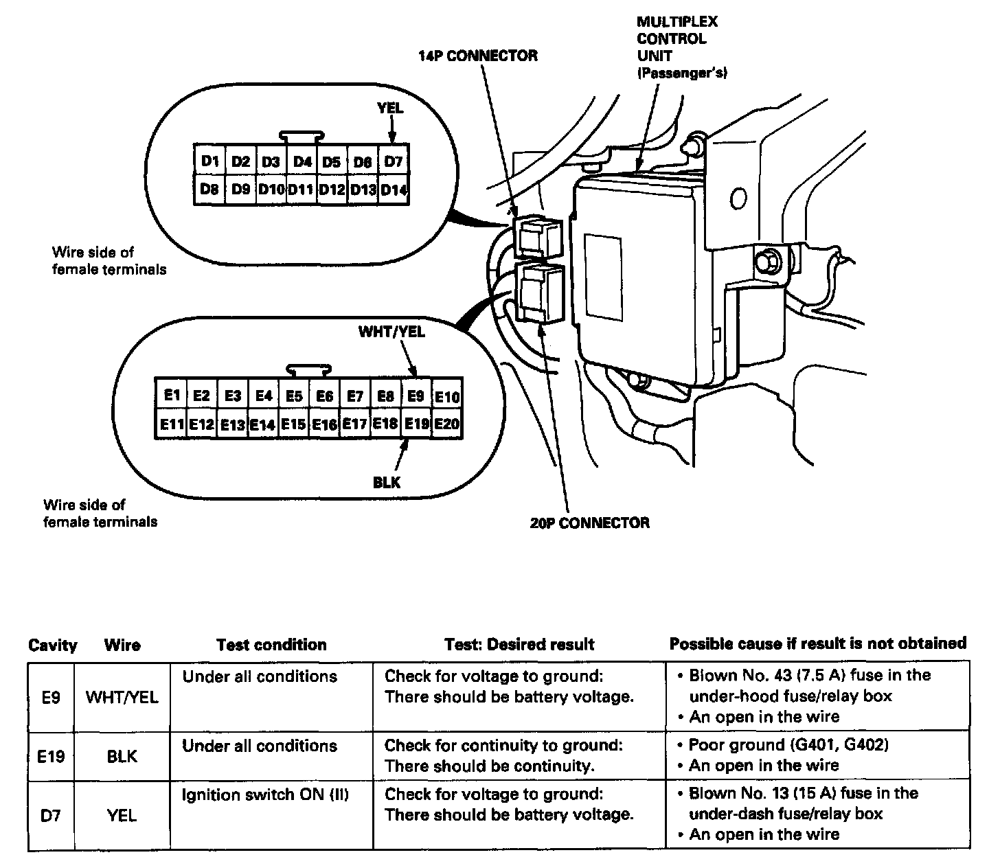 2. Disconnect the 14P and 20P connectors, then remove the passenger's unit.