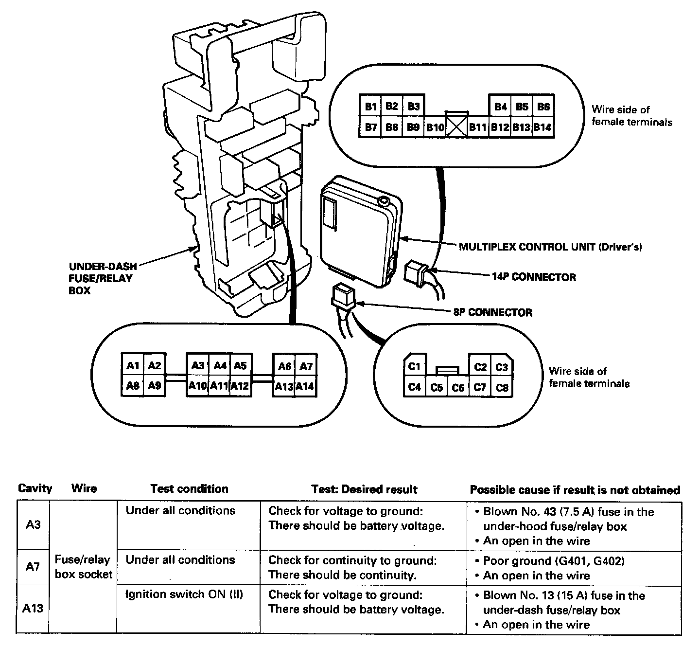^ If the terminals look OK, make the following input tests at the connector and the fuse/relay box socket.