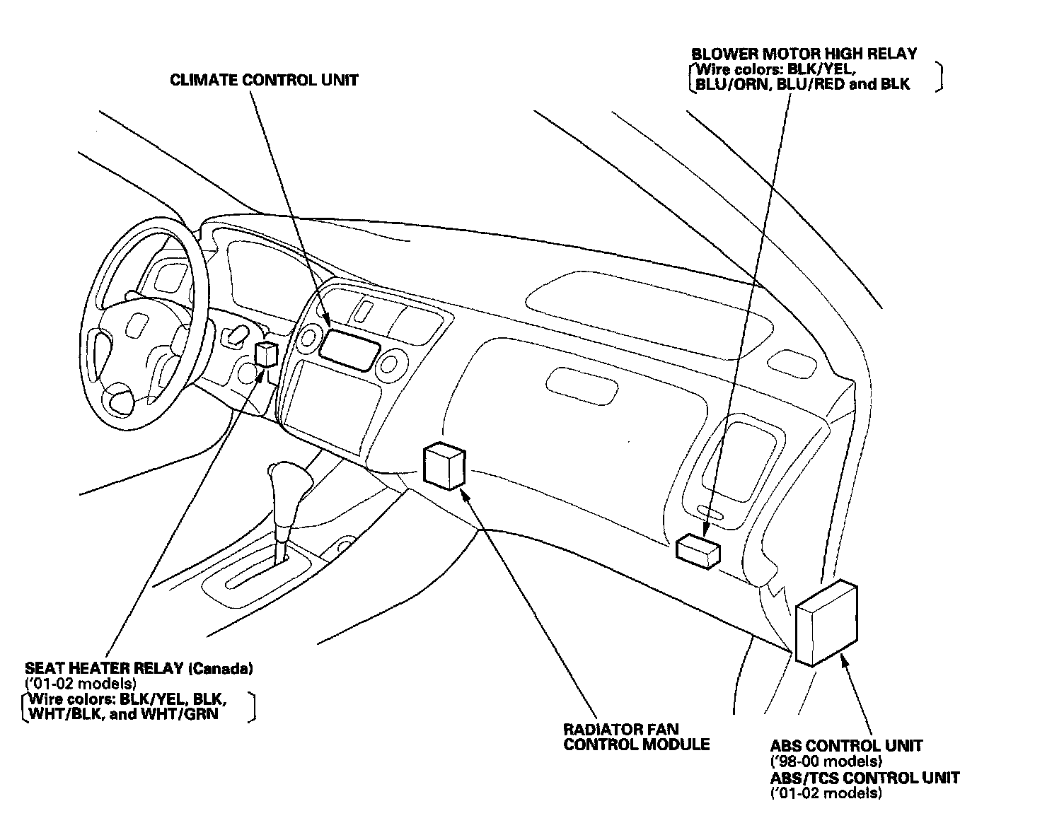 195. Behind Right Kick Panel (V6) ('01 -'02 Models):