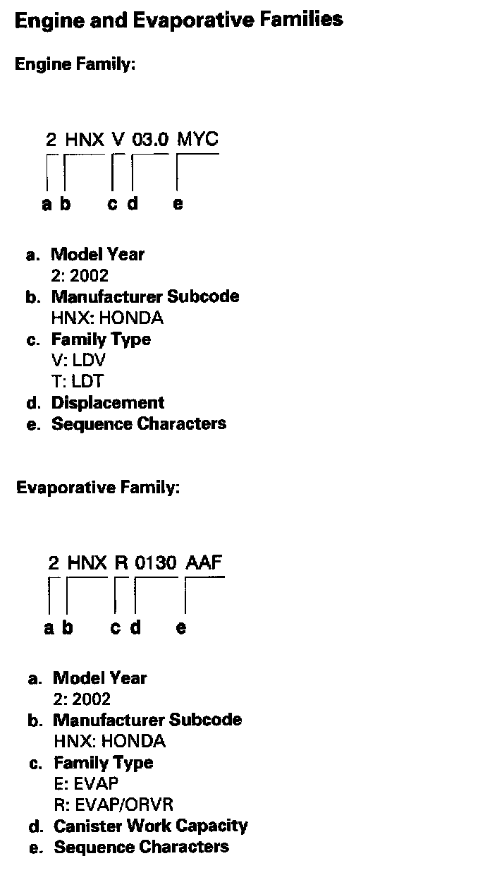 Engine And Evaporative Families: