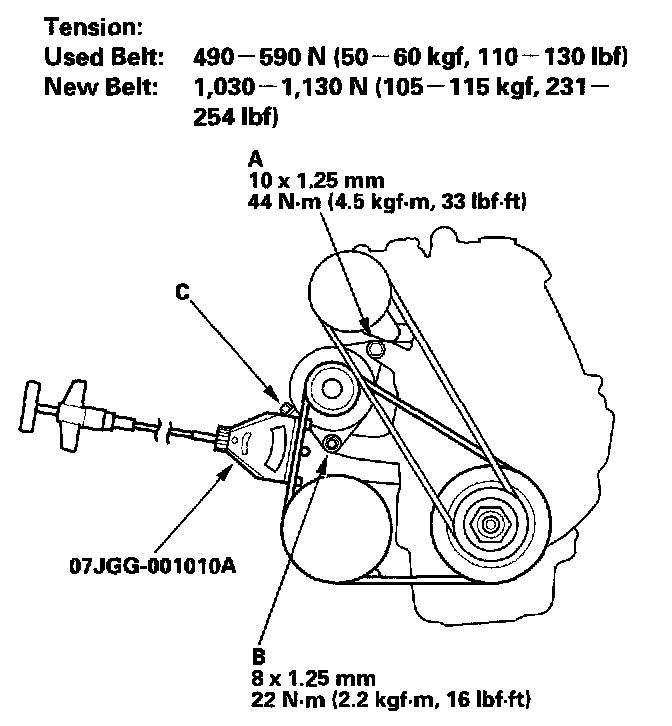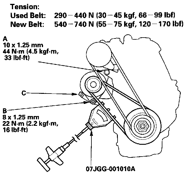 Alternator-A/C Belt (Tension Gauge Method):