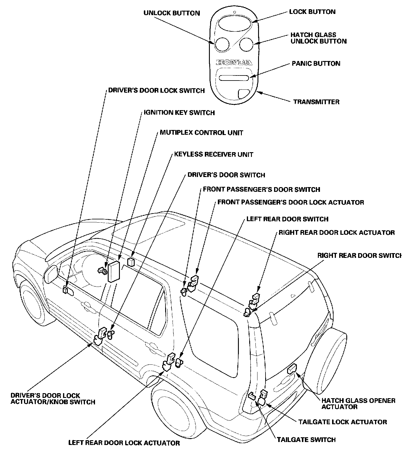 Keyless/Power Door Lock System - Component Location Index: