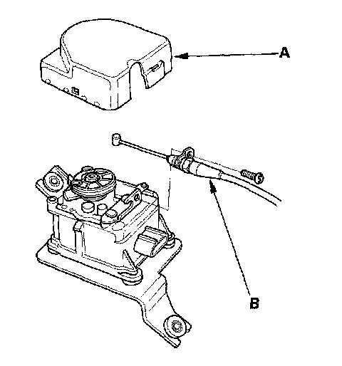 3. Remove the actuator cover (A), then remove the actuator cable (B) from the actuator.