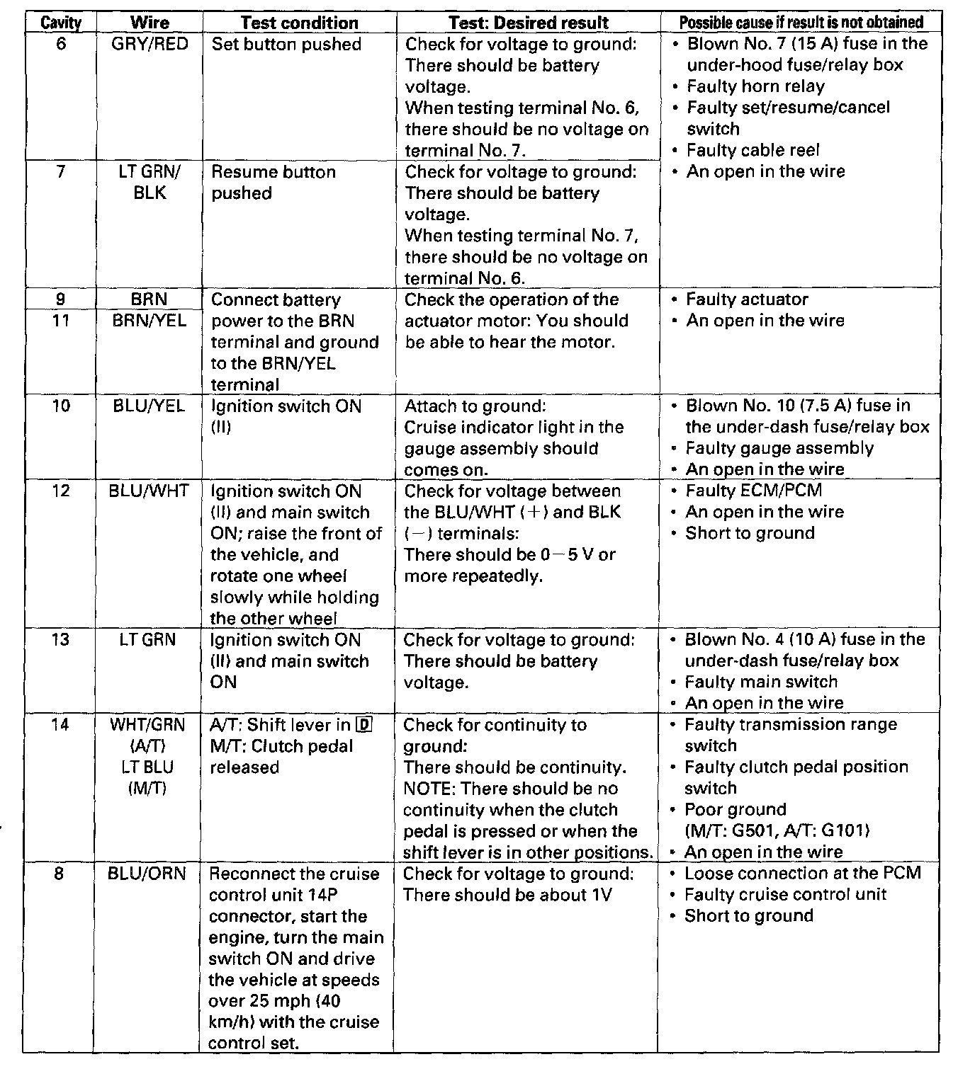 Cruise Control Unit Input Test