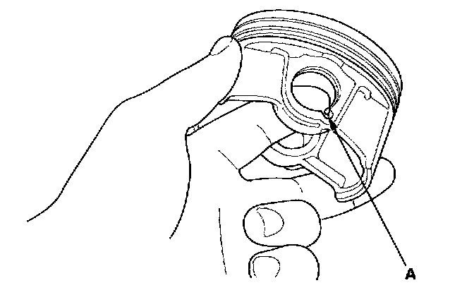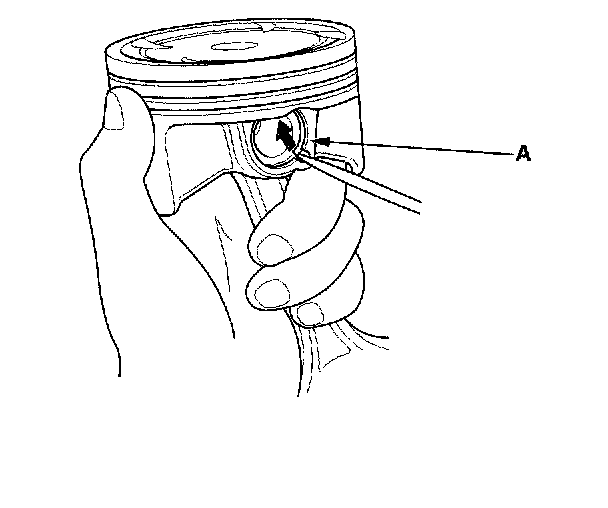 1. Install a piston pin snap ring (A).